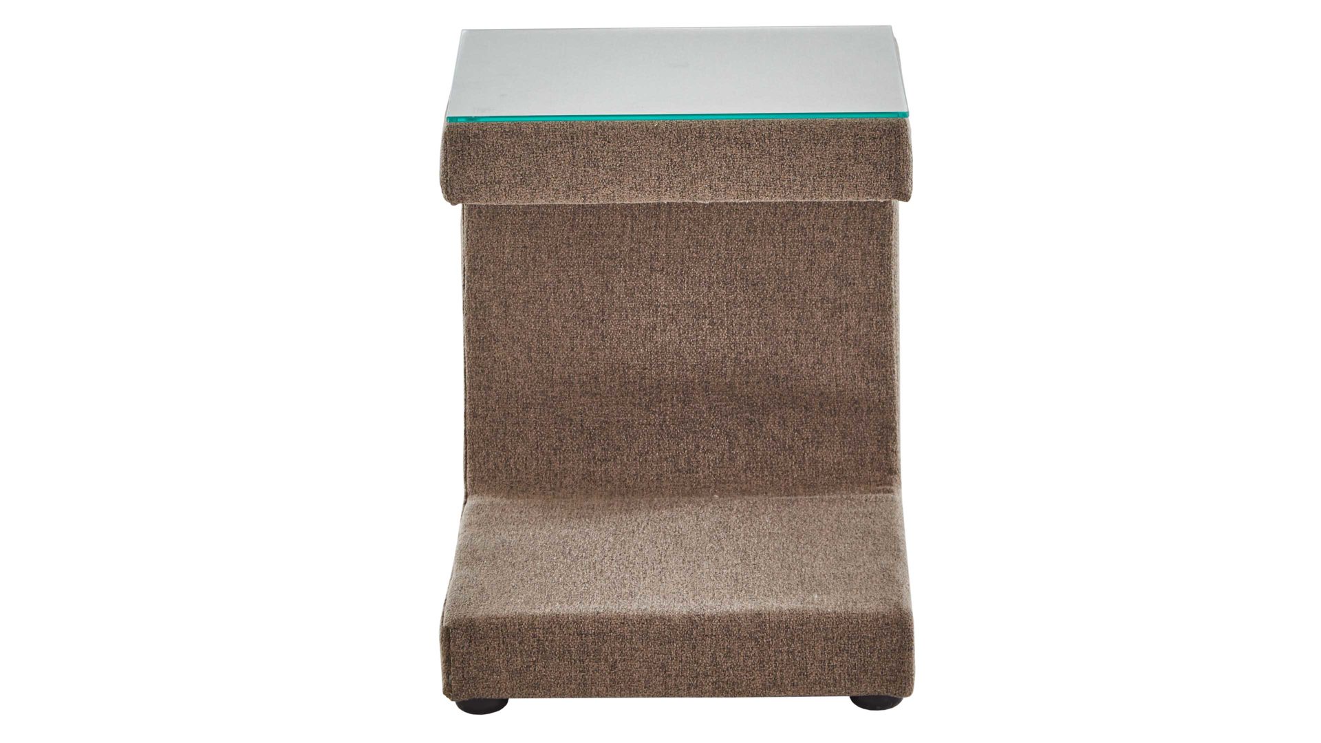 Optional ist ein Glasboden für die Oberseite erhältlich. Die Nachtkonsole La Vita harmoniert exzellent mit dem hellbraun stoffbezogenen Boxspringbett Elaura.