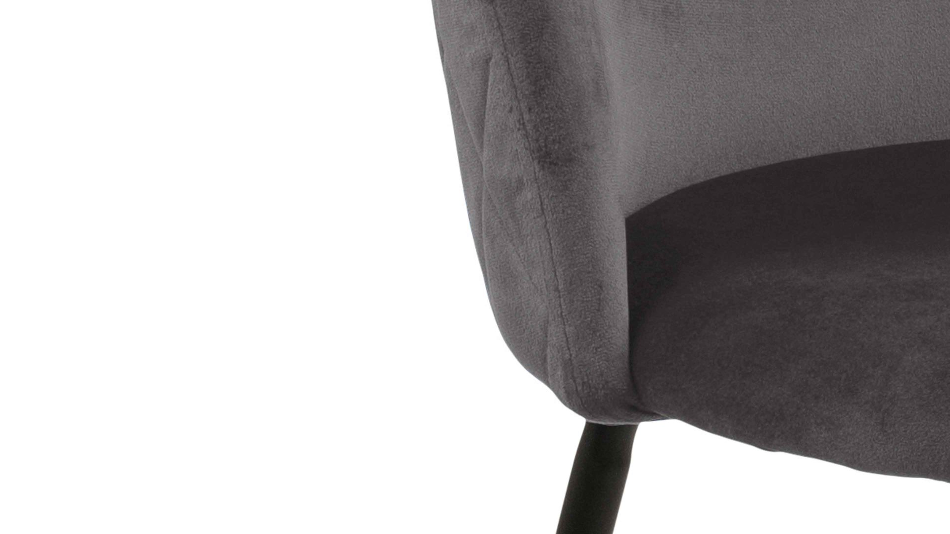Dabei harmoniert der Polsterstuhl in seiner sanften Formensprache mit zahlreichen Einrichtungsstilen. Moderne Geradlinigkeit ergänzt er ebenso stimmig wie den beliebten Vintage-Trend. Auch farblich erlaubt der Esszimmerstuhl Louise angenehme Freiheit beim Kombinieren: Dafür sorgt der dunkelgraue Bezug Dublin 40 in Samtoptik, der sowohl die Sitzfläche als auch die Rückenlehne umhüllt. Auf der Rückseite setzt eine Harlekinsteppung einen charmanten Blickfang. Die rau pulverbeschichteten Metallfüße ergänzen das Gesamtbild in dezentem Schwarz.