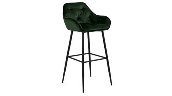 Dabei harmoniert der Tresenstuhl in seiner sanften Formensprache mit zahlreichen Einrichtungsstilen. Moderne Geradlinigkeit ergänzt er ebenso stimmig wie den beliebten Vintage-Trend. Auch farblich erlaubt der Hocker angenehme Freiheit beim Kombinieren: Dafür sorgt der waldgrüne Bezug Vic 68AC aus Samt, der die gesamte Sitzschale inklusive der bequemen Armlehnen weich umhüllt. Die rau pulverbeschichteten Metallfüße fließen in mattem Schwarz stimmig in das Gesamtbild ein.