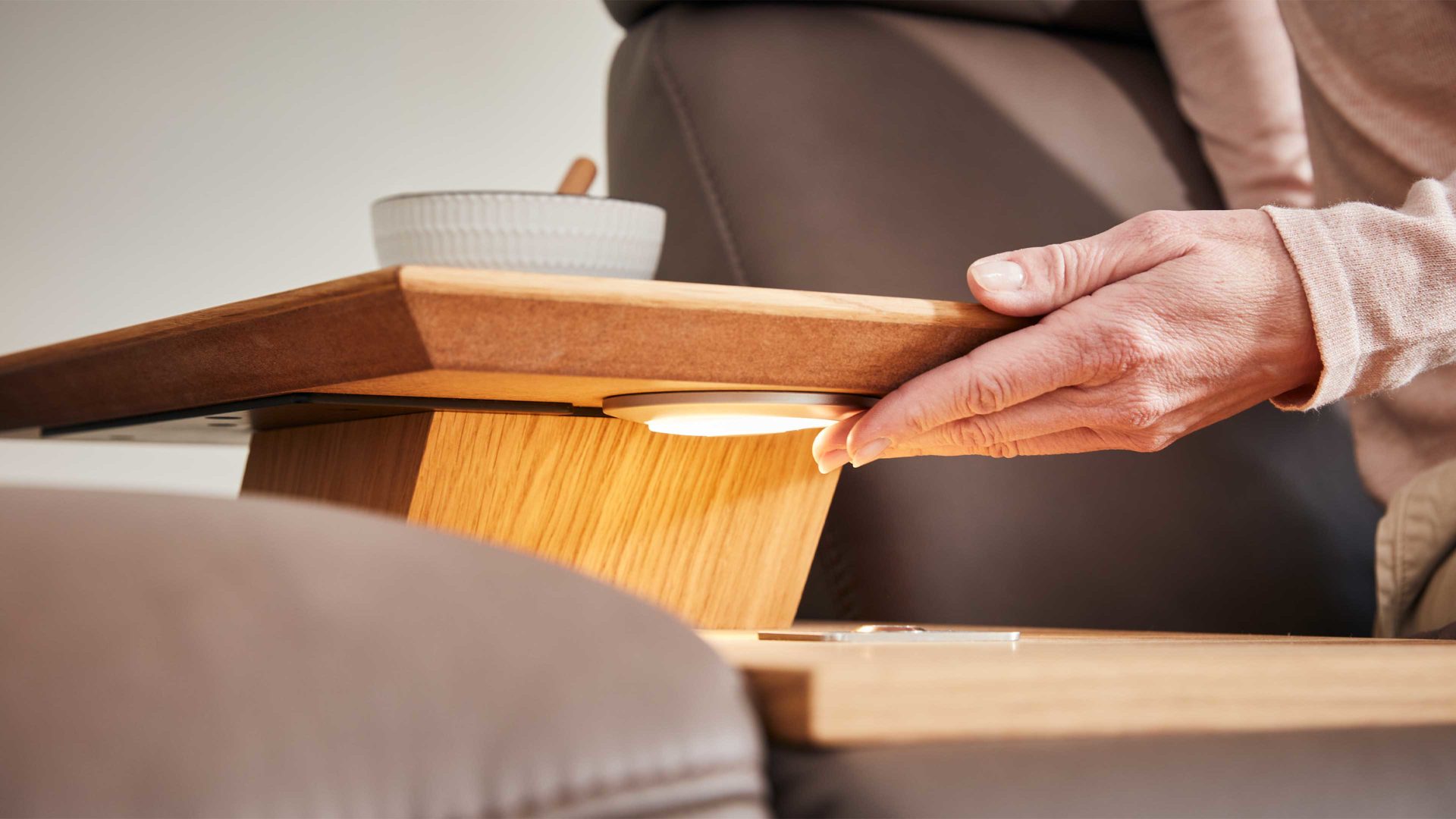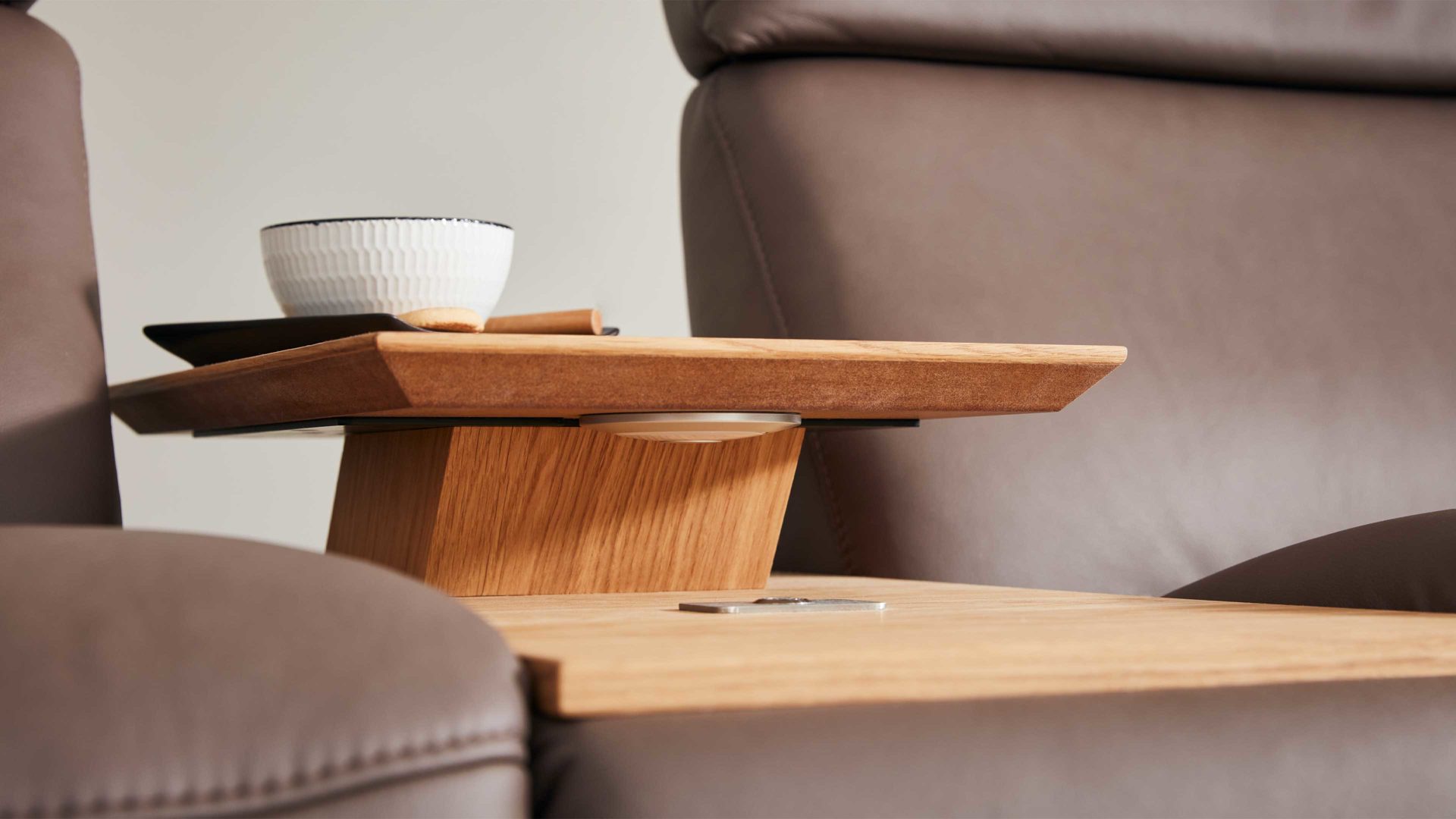 mit beleuchtetem Wildeiche-Zwischentisch inklusive praktischem USB-Anschluss
