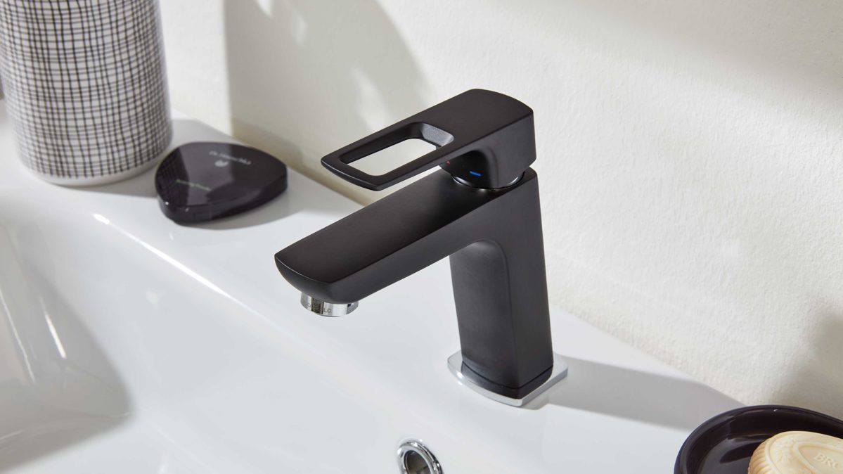 Interliving Bad Serie 7402 – moderne Waschtisch-Armatur in Schwarz und Chrom