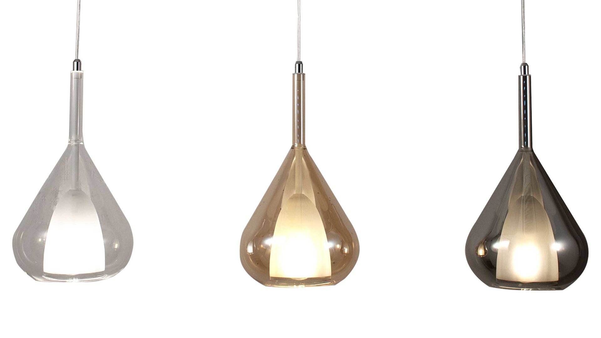 Borosilikat-Lampenschirme in den Farben Amber, transparentes Grau und Transparent