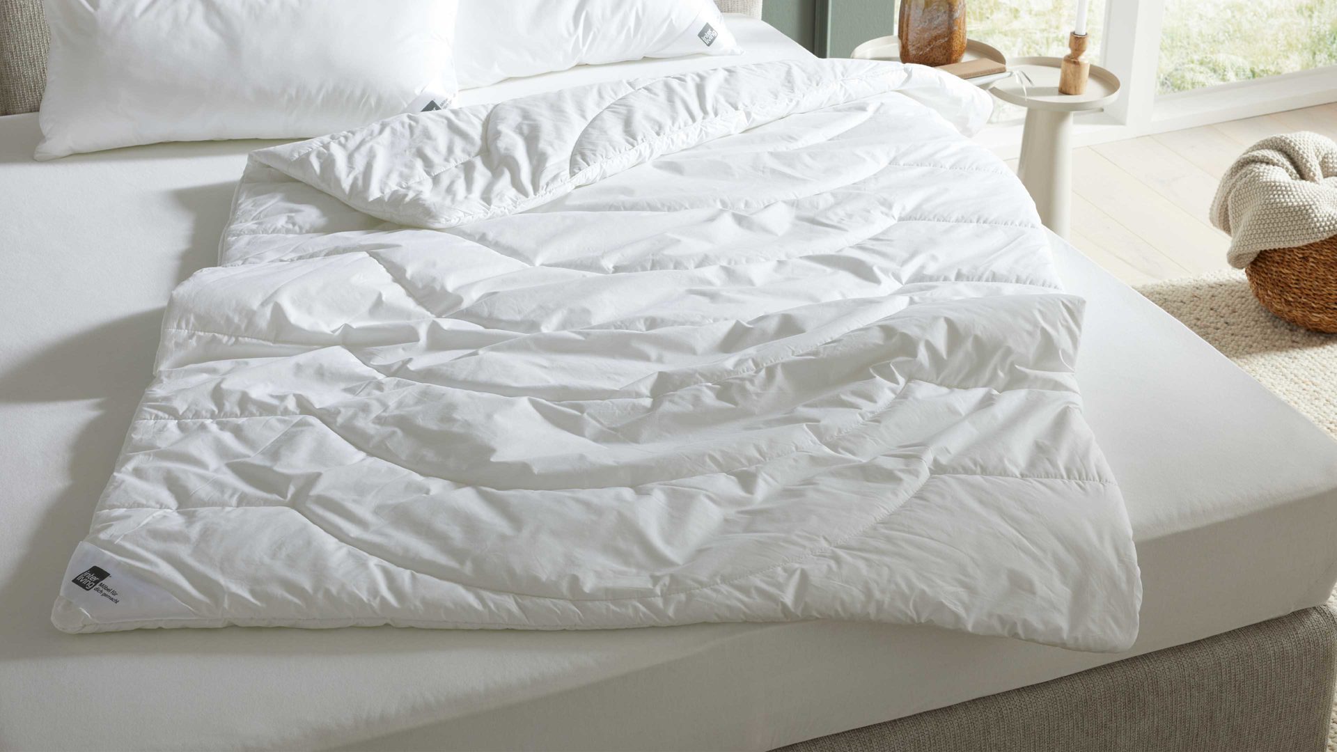 Die normale Ausführung ist genau richtig bei einem durchschnittlichen Wärmebedarf. Der feine Bezug aus weißem Baumwoll-Batist fühlt sich wunderbar weich an, während die leichte Steppung dafür sorgt, dass sich die Decke optimal an deinen Körper anschmiegt. Die Füllung aus ca. 980 g hochbauschiger 3D-Hohlfaser sorgt für ein kuscheliges Volumen – mit ca. 155 x 220 cm (BxL) genau in der richtigen Größe für erholsame Nächte.