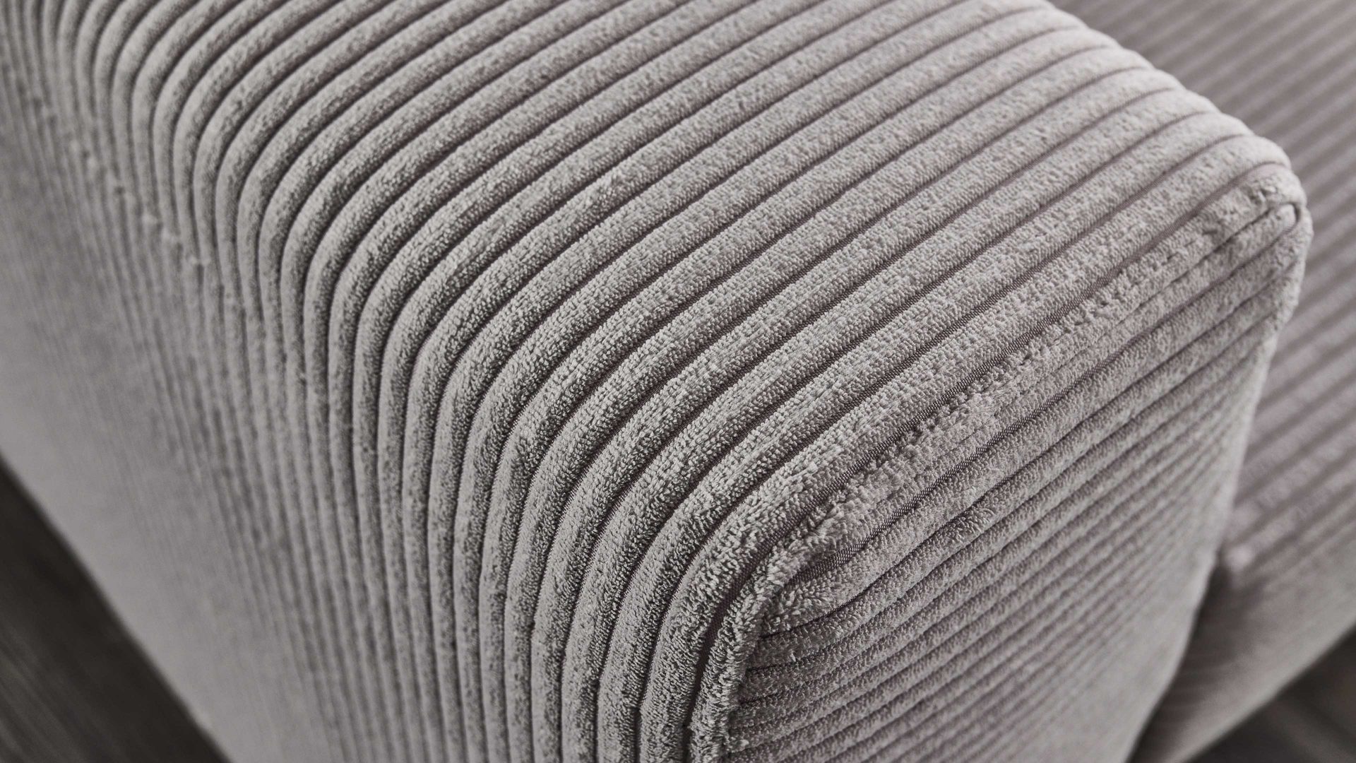 platingrauer Breitcordbezug, kombiniert mit mattschwarz pulverbeschichteten Metallfüßen