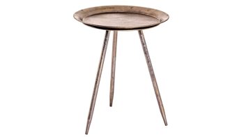 Der Durchmesser des stilvollen Beistelltisches beläuft sich auf ca. 38 cm. Seine Höhe beträgt ca. 47 cm. Alternativ oder ergänzend können Sie den vielseitig einsetzbaren Tisch auch in extravagantem Antikbronze und/oder mit etwas größeren Maßen bestellen, ganz nach Geschmack und Bedarf.