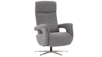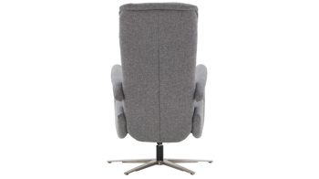 Kombinieren Sie den stahlfarbenen Stoffbezug mit kräftigen Farben oder mit modernem Weiß. Denn der edelstahlfarbene Metall-Sternfuß passt hervorragend auch zu einem schlichten Einrichtungsstil. Aber vor allem der Sitzkomfort wird bei diesem Drehsessel großgeschrieben. Denn neben einer Sitzhöhe von ca. 43 cm, einer Sitztiefe von ca. 53 cm und einer Sitzbreite von ca. 51 cm überzeugt der Polstersessel mit einer hochwertigen Schaumpolsterung auf Wellenfederung. Zudem ist der Fernsehsessel 360 Grad drehbar und bietet manuelle Relaxfunktionen: Mittels Körperdruck wird die Rückenlehne gesenkt und der Sitz geht automatisch nach vorn und nach oben.