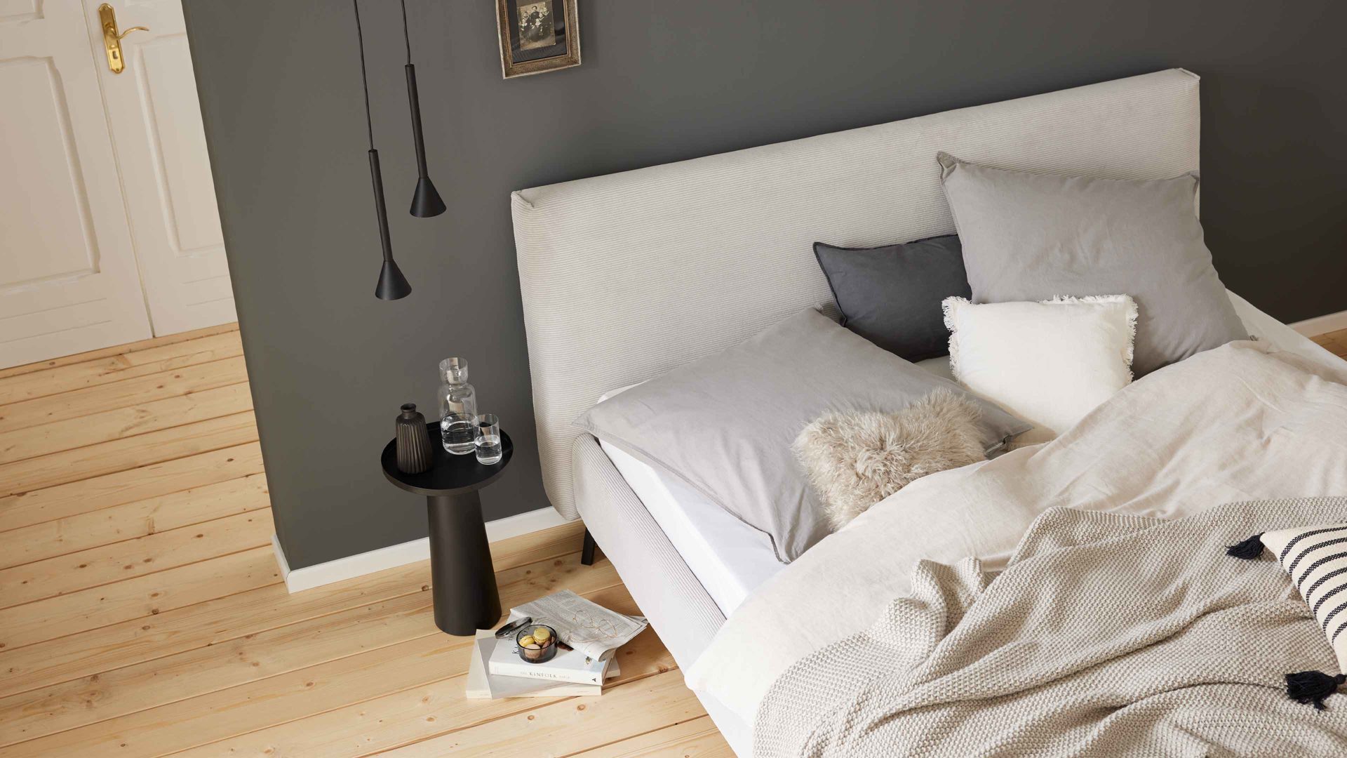 Ein zentrales Gestaltungselement ist das Polsterkopfteil A medium, das mit einem eleganten umlaufenden Keder versehen ist und über eine Rückseite im Originalstoff verfügt – so macht das Bett auch frei im Raum eine gute Figur. Der glatt bezogene Bettrahmen Basic punktet mit einer vierfach höhenverstellbaren Einlegetiefe, die sich perfekt auf unterschiedliche Matratzen- und Lattenrostsysteme abstimmen lässt.