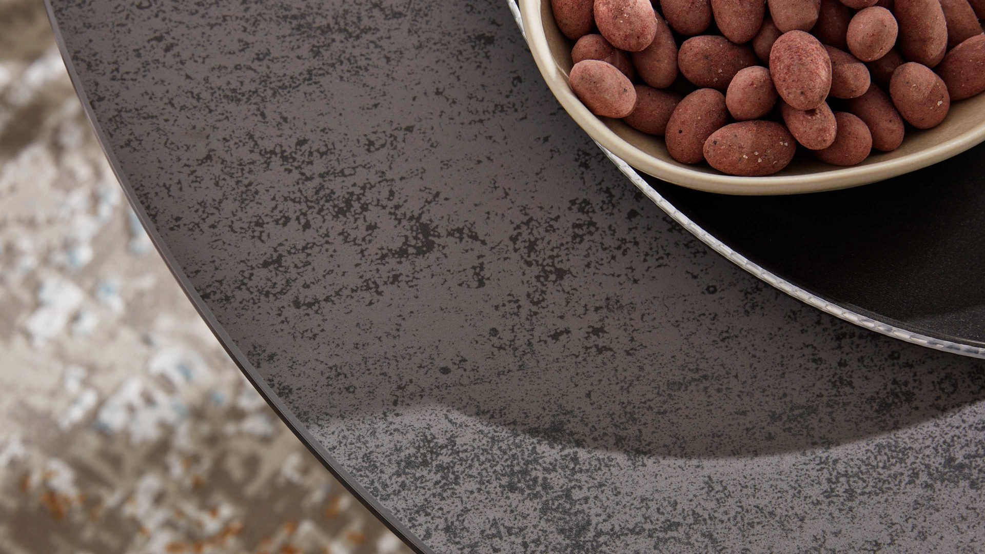 Interliving Couchtisch Serie 6208 – Runder Couchtisch mit titanfarbener Keramikplatte