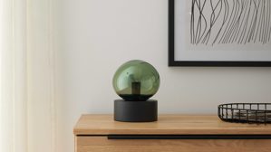 Die Tischlampe aus der Interliving Leuchten Serie 9350 vereint modernes Design mit wohnlicher Ausstrahlung. Der organisch geformte, matte Glas-Lampenschirm in elegantem Grün setzt ein stilvolles Highlight, während der mattschwarze Metallsockel und das schwarze Textilkabel mit praktischem Schnurschalter für einen harmonischen Gesamteindruck sorgen.
