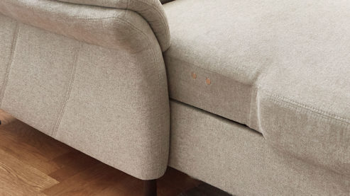 Das Programm bietet eine beeindruckende Typen- und Bezugvielfalt, wobei alle Rückseiten im Originalstoff bezogen sind und die Bezüge wahlweise mit oder ohne Kontrastnaht umgesetzt werden können. Überdies stehen sieben Fußvarianten, zwei preisgleiche Sitzhöhen und mit Kaltschaum, Federkern und - gegen Aufpreis - Boxspring drei Sitzqualitäten zur Wahl.