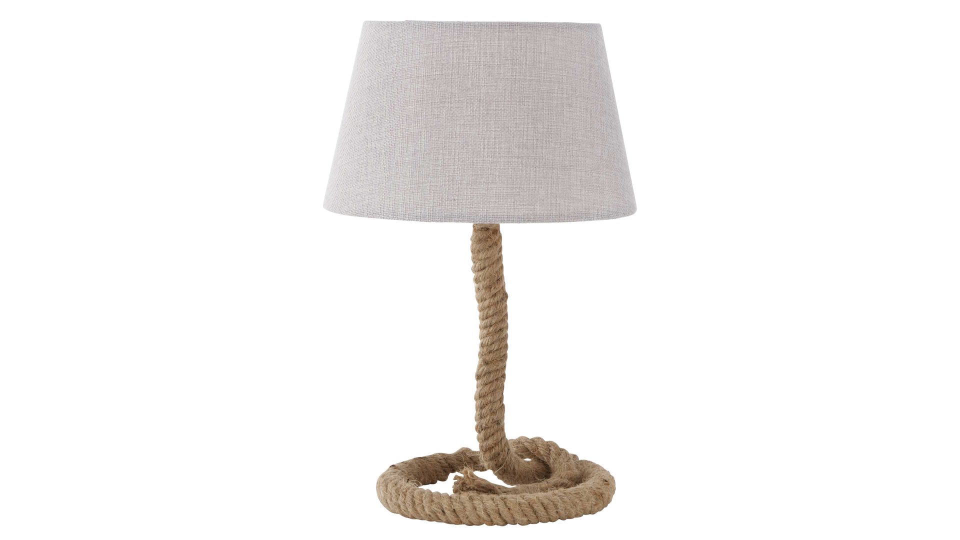 Tischleuchte Toko | naturfarbener Polyester-Lampenschirm | mit Jute umwickelter Eisenfuß | Höhe ca. 40 cm, Durchmesser ca. 24 cm | ohne Leuchtmittel, benötigt wird 1x 27, maximal 40 Watt | EU-Stecker | Kabellänge ca. 150 cm | auch mit weißem Lamepnschirm erhältlich