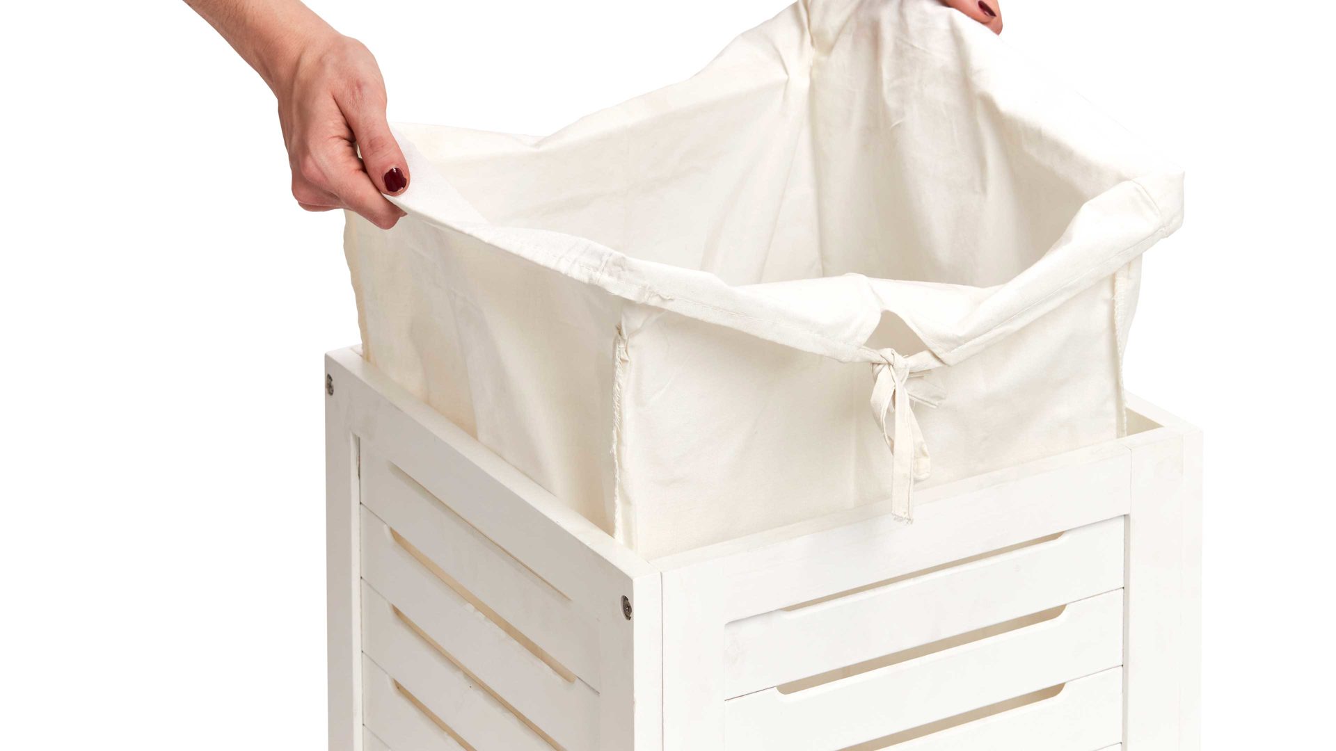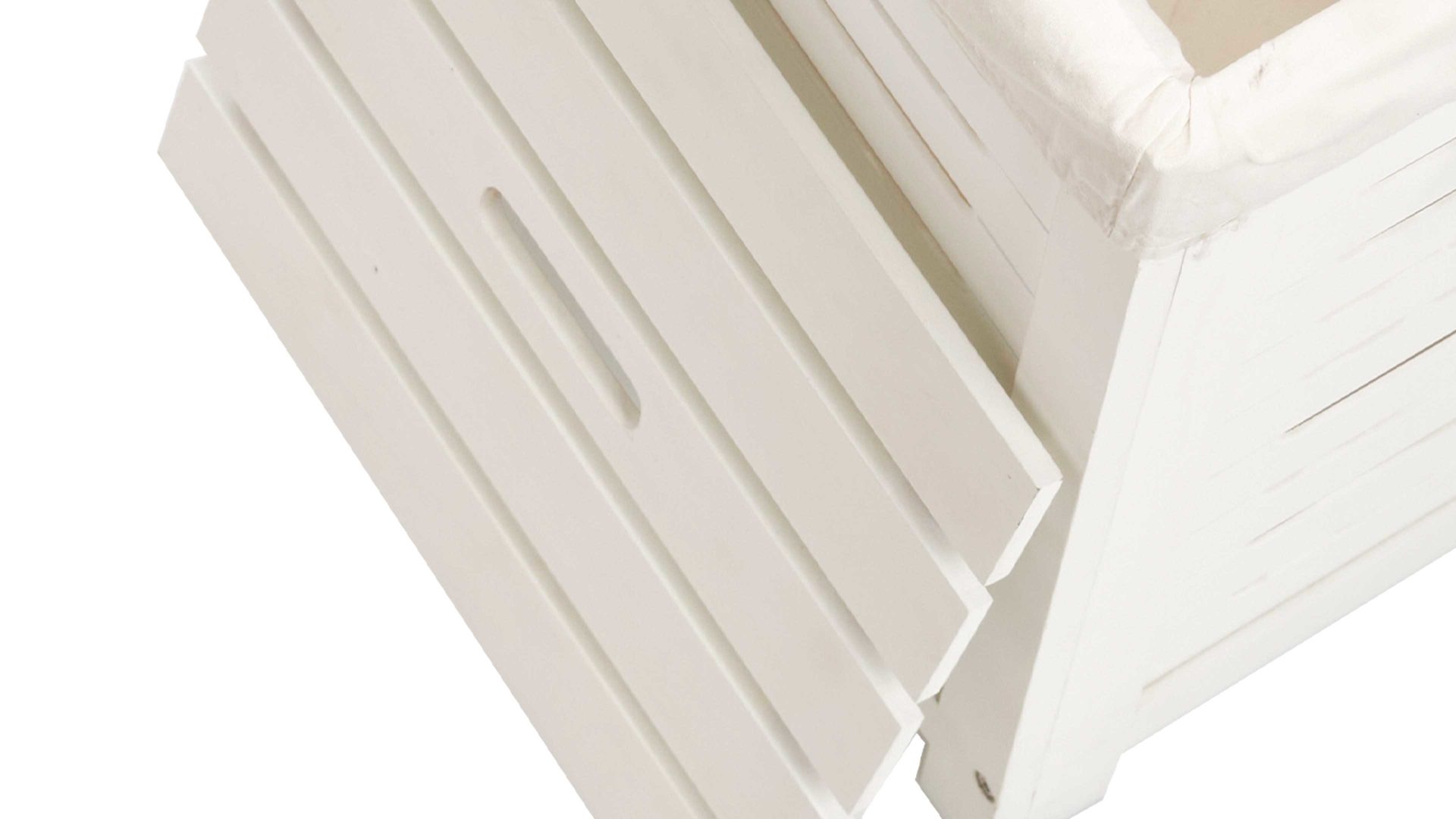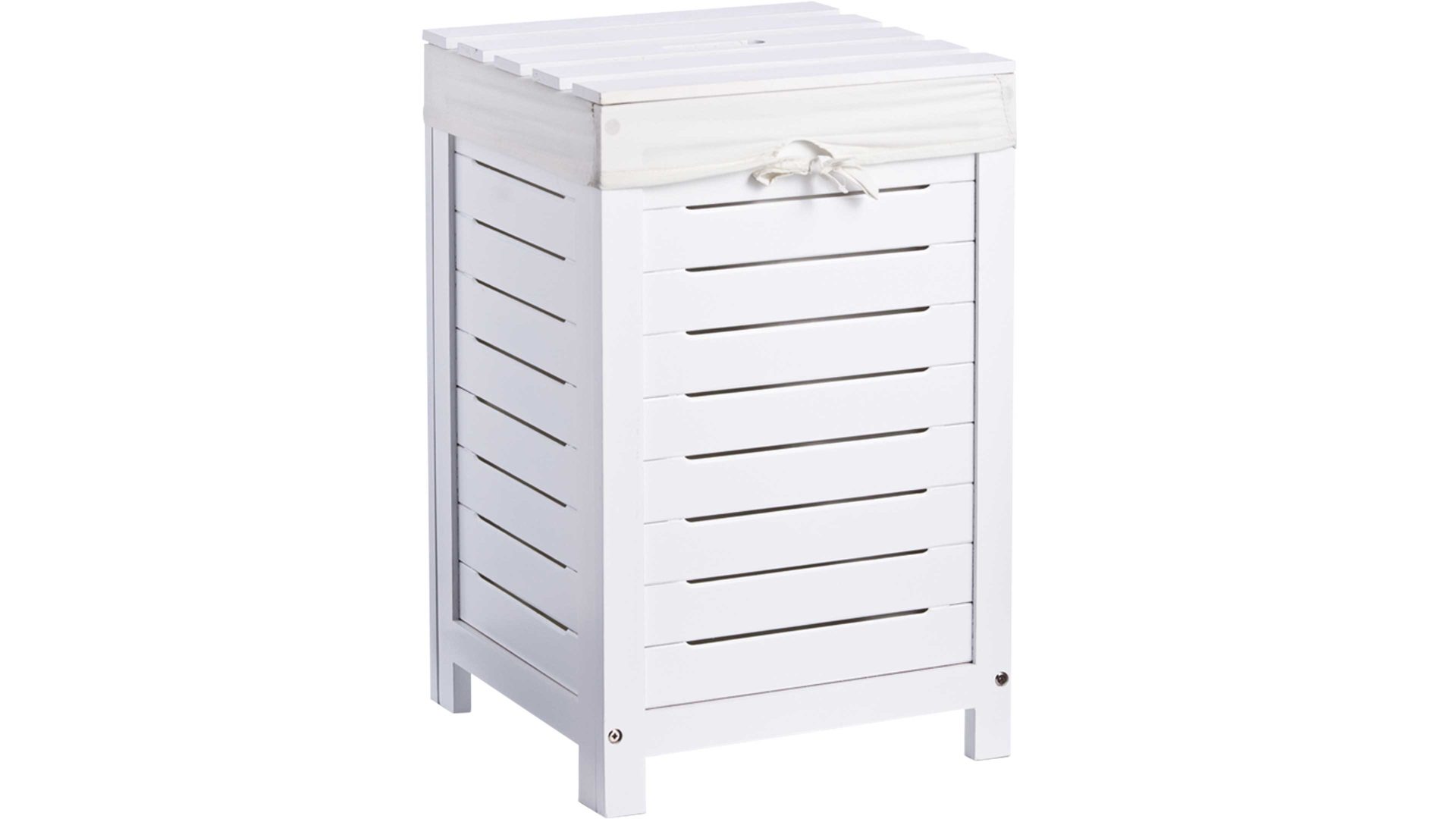 Der Korb ist aus modernem und pflegeleichtem MDF gefertigt. Durch seine weiß lackierte Oberfläche ist er nicht nur ein praktischer Alltagshelfer, sondern ein Hingucker in Ihrem Zuhause. Besonders hygienisch: Sie erhalten den Wäschekorb mit einem herausnehmbaren und waschbaren Wäschesack. Profitieren Sie von den Maßen von ca. 35 x 35 x 55 cm (BxHxT) und platzieren die Wäschetruhe neben Ihrem Bett, Kleiderschrank oder in Ihrem Badezimmer.