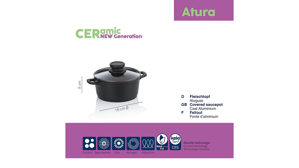 Fleischtopf Atura – Erweitern Sie Ihre Küche mit diesen hochwertigen Kochtöpfen aus Aluguss, die in drei praktischen Größen erhältlich sind. Diese Töpfe zeichnen sich durch eine innovative Keramikbeschichtung aus. Sie sorgt für eine gleichmäßige Hitzeverteilung und einen langanhaltenden Antihafteffekt, wodurch das Kochen besonders einfach und angenehm wird. Die Keramikbeschichtung und die robusten Griffe aus einem Guss gewährleisten maximale Stabilität. Nach dem Kochen lassen sich die Töpfe mühelos reinigen, sodass Sie mehr Zeit für die Dinge haben, die Ihnen wichtig sind. Diese Kochtöpfe sind die perfekte Ergänzung für Ihre Küche. Fleischtopf Atura inklusive Deckel, Durchmesser ca. 16 cm