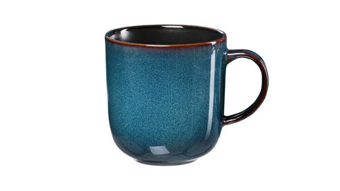 blaues Steinzeug mit braunem Rand