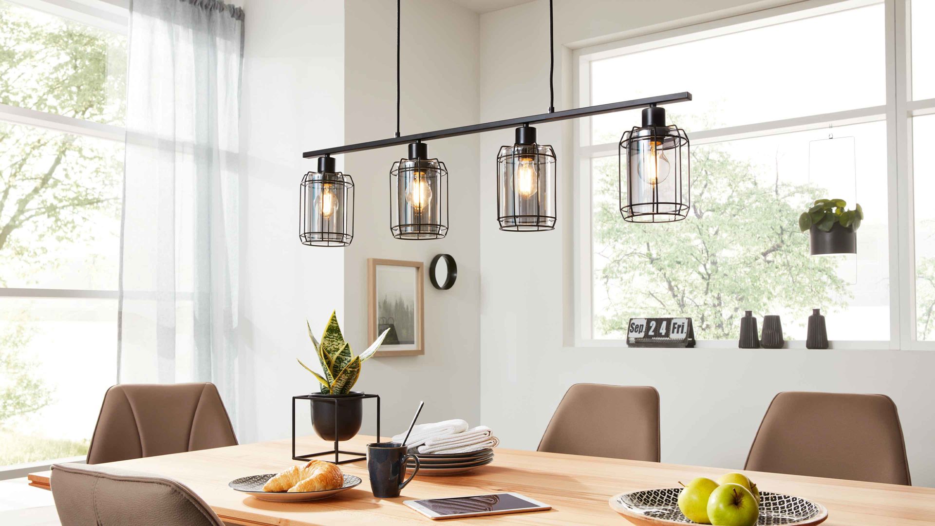 Die ansprechend designte und hochwertig verarbeitete Pendellampe empfiehlt sich in erster Linie für das Esszimmer und die Küche. Um für die gewünschte Helligkeit zu sorgen, benötigen Sie vier Leuchtmittel mit E27-Sockel und einer Leistung von jeweils maximal 60 Watt. Diese sind nicht im Lieferumfang enthalten.