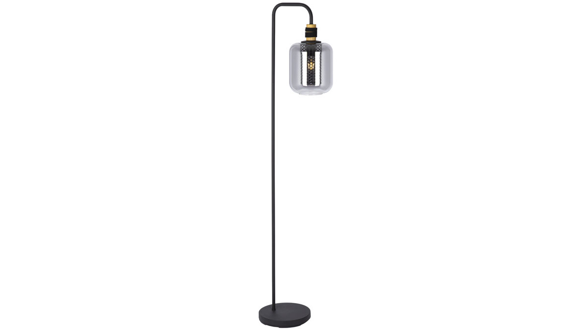 glänzend rauchfarbenes Glas und mattschwarzes Metall