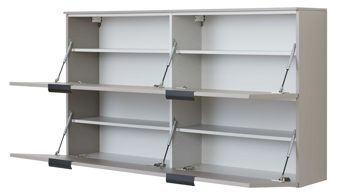 Hinter den beiden großzügigen Klapptüren verbirgt sich eine clevere Innenaufteilung: Vier Einlegeböden bieten reichlich Platz für Sneaker, Stiefeletten, Sandalen oder Sportschuhe. Die leichtgängige Klappmechanik sorgt dafür, dass du jederzeit bequem an deine Lieblingspaare kommst – besonders praktisch bei häufigem Schuhwechsel oder für Familien mit vielen Schuhen.