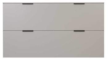 Die Kombination aus graubeigem Mattlack und mattschwarzen Metallgriffen verleiht dem Flurschrank einen edlen, zeitgemäßen Look, der sich harmonisch in verschiedenste Wohnstile einfügt – ob als Einzelstück oder als Teil eines abgestimmten Garderobenmöbel-Sets.