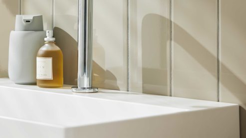 Eine Armatur und weitere dargestellte Einrichtungsgegenstände sind separat gegen Mehrpreis bestellbar.