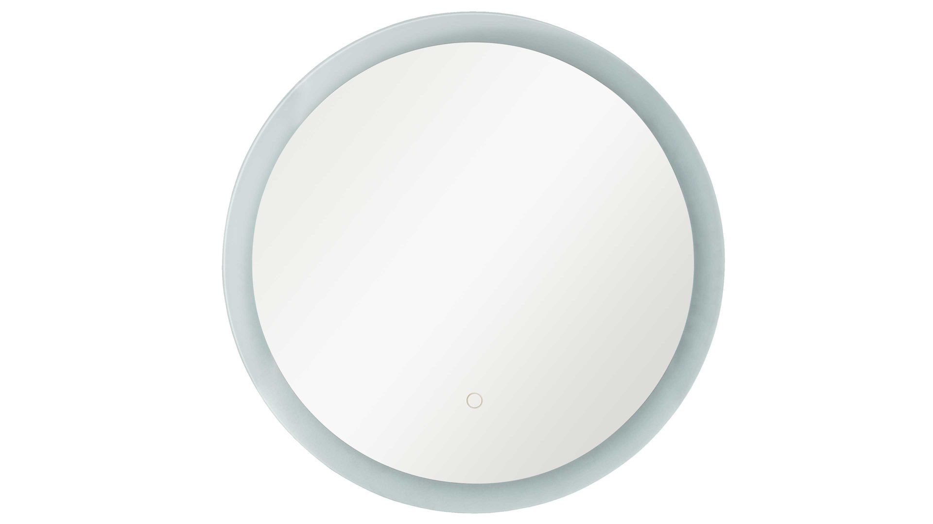 Der runde Spiegel (Typ 15201) mit einem Durchmesser von ca. 60 cm und einer Tiefe von ca. 2,5 cm wirkt elegant und zurückhaltend. Das umlaufende sandgestrahlte LED-Lichtfenster (ca. 4 cm breit) setzt ein dezentes Highlight und sorgt für gleichmäßige Helligkeit.