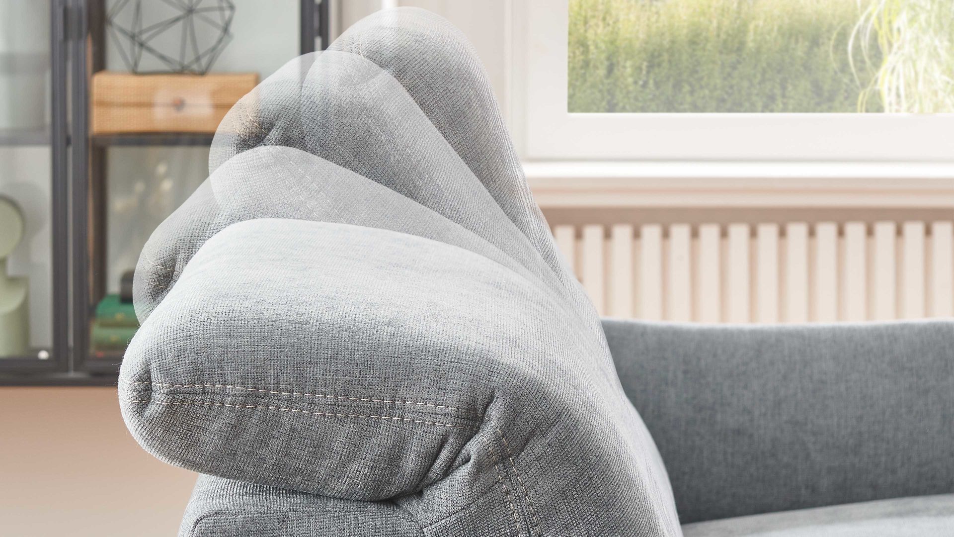 stahlfarbener Stoffbezug mit beiger Kontrast-Doppelsteppnaht