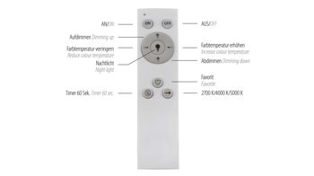 | Verstellbarkeit und Funktion: | dimmbar Fernbedienung CCT | Lichtmanagement Memoryfunktion per App steuerbar Timer | |