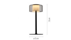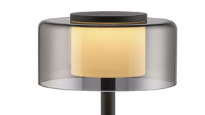 matt schwarzes Metall kombiniert mit rundem Lampenschirm aus Rauchglas