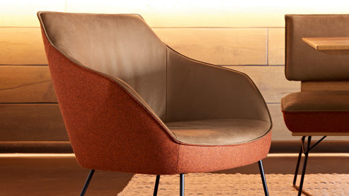 muskatfarbenes Leder, kombiniert mit cognacfarbenem Lodenbezug und einer beigen Kontrastnaht und mattschwarzem Rundrohr