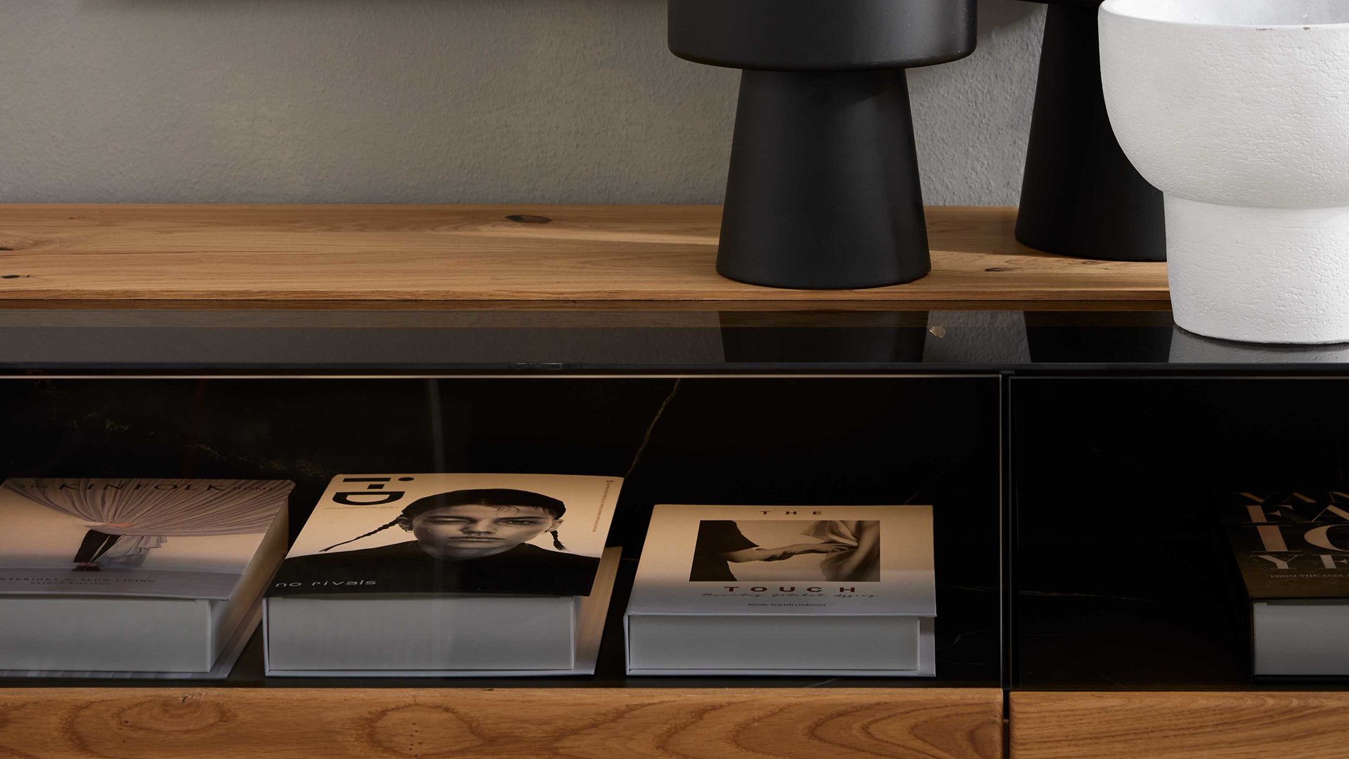 Die Interliving Wohnzimmer Serie 2027 steht für hochwertige Verarbeitung, modernes Design und clevere Funktionalität. Viele Elemente – von Sideboards über Wandboards bis hin zu Vitrinen – lassen sich mit einer stilvollen LED-Beleuchtung ausstatten und so individuell gestalten. Schubladen mit Selbsteinzug und Schließdämpfung sorgen für leisen Bedienkomfort, während die vormontierte Lieferung den Aufbau besonders einfach macht.