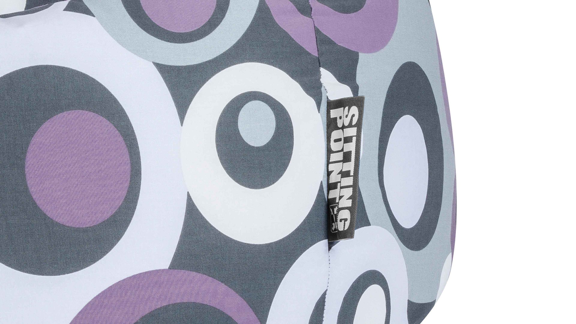 Der Sitzsack L von SITTING POINT bringt im angesagten Retrolook einen wirkungsvollen Farbtupfer in Ihre Einrichtung. Der in verschiedenen violetten Farbtönen gehaltene, großgemusterte Sitzsack besteht aus Baumwolle und Kunststoff. Er ist zudem mit einem abwaschbaren Bezug versehen und mit ca. 120 Liter Markenstyropor gefüllt.