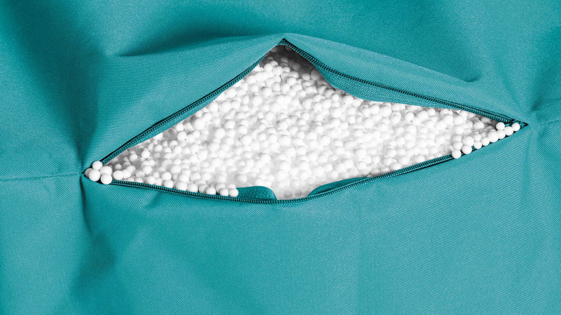 Durch seine dicht gewebte Struktur ist der Stoff besonders widerstandsfähig, unempfindlich gegenüber Nässe und leicht zu reinigen. Eine zusätzlich aufgebrachte PVC-Beschichtung auf der Innenseite des Stoffes macht scuba® zudem extrem robust und reißfest. Zugleich ist er angenehm weich und bequem. Der schwer entflammbare Bezug macht den Sessel zum perfekten Begleiter für Garten, Terrasse und Balkon. Ist die Füllung entfernt, lässt sich der Bezug bei 40 Grad im Schonwaschgang waschen.
