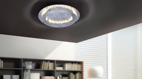 Um Ihre Gäste mit einem besonders angenehmen Licht im Wohnzimmer zu begeistern, ist die Deckenlampe des Herstellers Paul Neuhaus die richtige Wahl. An der großen kreisrunden Deckenplatte mit einem Durchmesser von ca. 50 cm ist ein schmaler Ring befestigt. So strahlt das Licht der Deckenleuchte Nevis indirekt und schafft ein stimmungsvolles Ambiente.