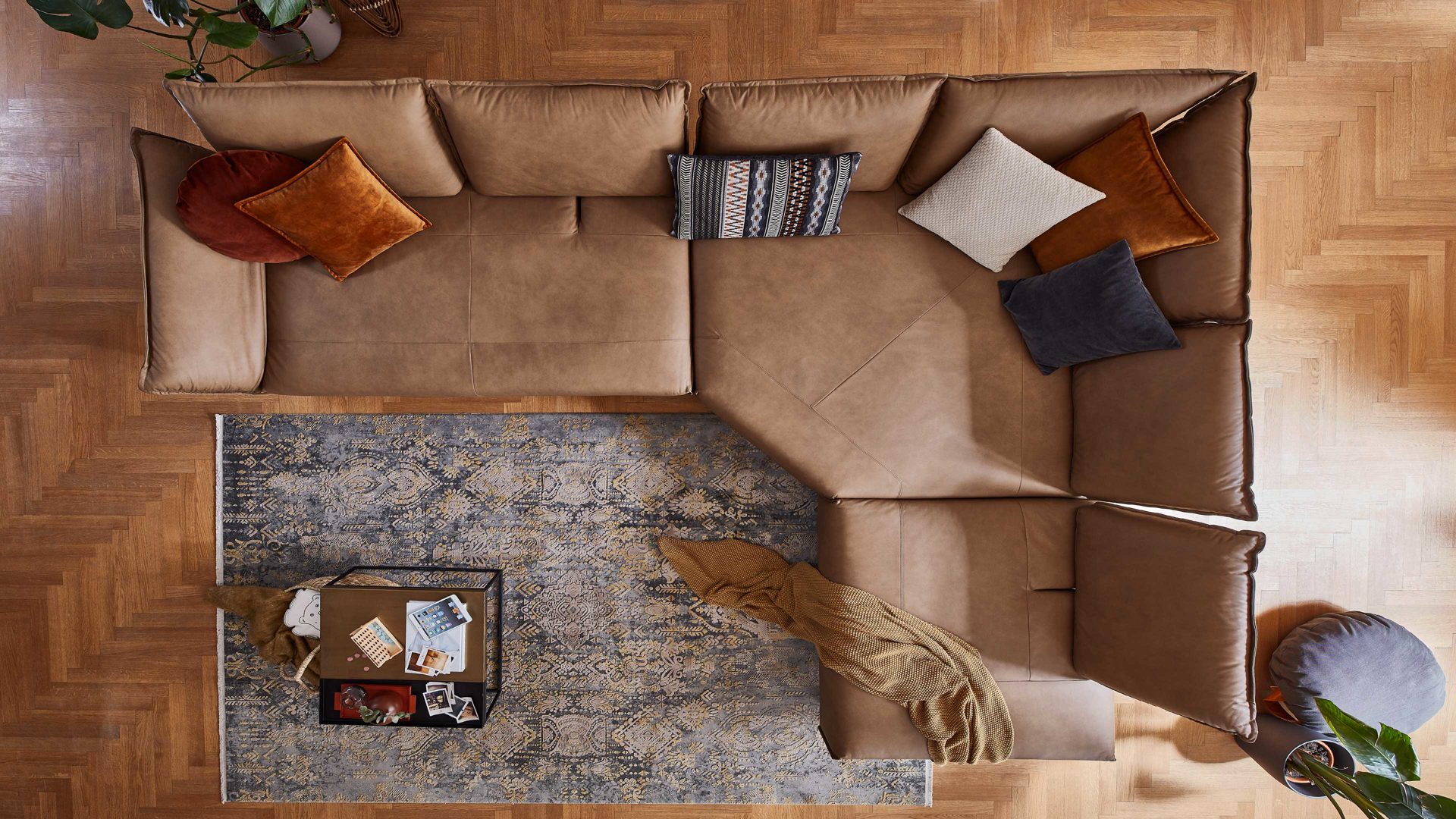 Gegen Mehrpreis können Sie weitere Funktionen ergänzen, die das Sofa noch bequemer machen. Die Stellfläche und das Schenkelmaß der Ledercouch belaufen sich auf ca. 340 x 272 cm (LxB, von links nach rechts), bei einer Sitzhöhe von ca. 42 cm und einer Sitztiefe von ca. 69 cm.