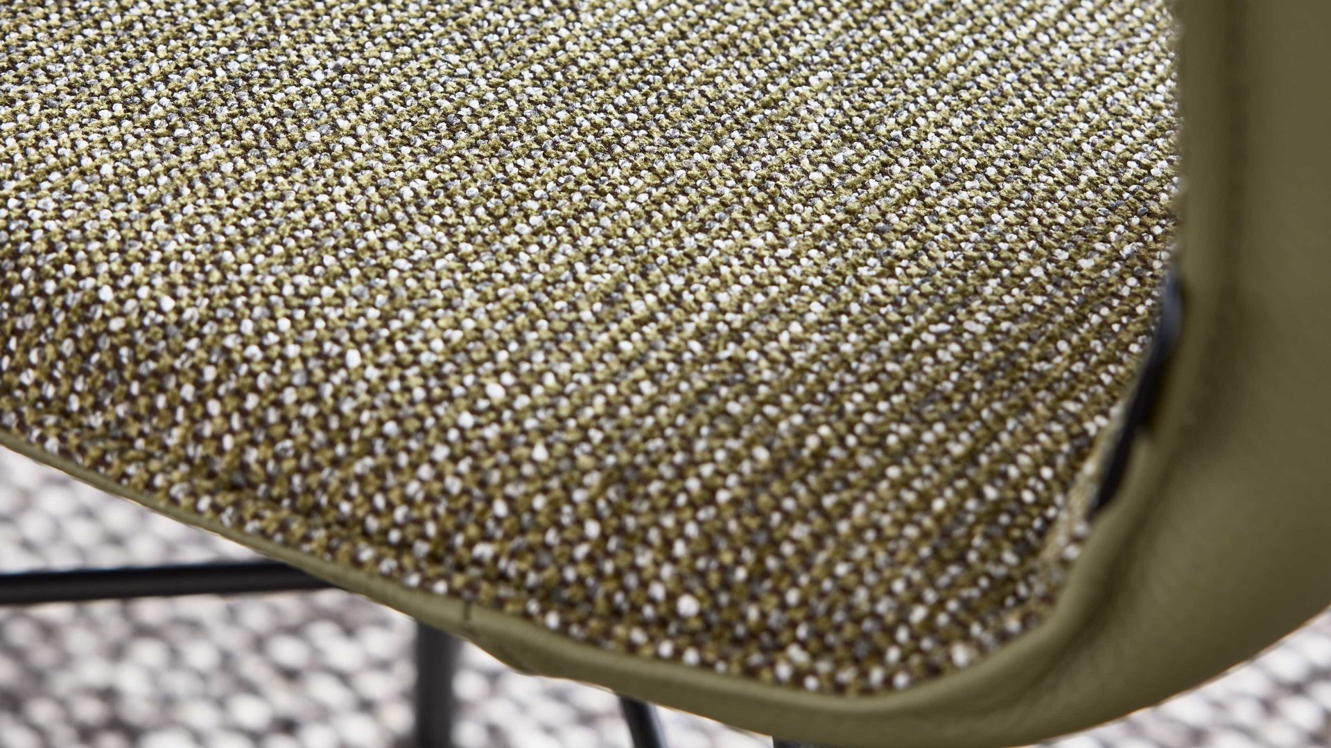 Der Vierfußstuhl aus der Interliving Esszimmer Serie 5115 verbindet modernen Komfort mit einem entspannten, wohnlichen Look. Die Kombination aus außen jadefarbenem Leder und innen moosfarben meliertem Stoff wirkt warm und einladend, während das umbragrau pulverbeschichtete Metall-Vierfußgestell für Stabilität und einen klaren, modernen Akzent sorgt. Die dezente Steppnaht in der Rückenlehne setzt dabei einen feinen, eleganten Akzent.