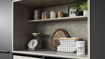 • Die Abbildung zeigt ein Wohnbeispiel, welches auch Dekoration sowie separat erhältliches Zubehör enthält. Im Lieferumfang enthalten ist eine Hauswirtschaftsraumlösung ohne Geräte.