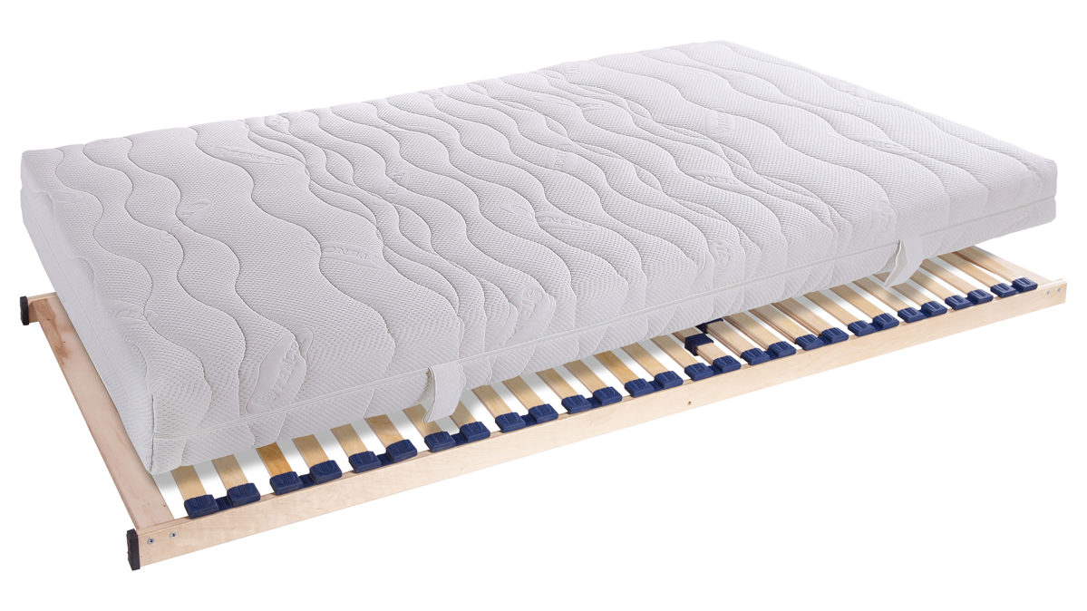 zweiteiliges Set aus Kaltschaummatratze und Lattenrostrahmen