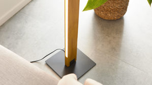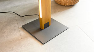 Naturfarbenes Holz, mattes schwarzes Metall und ein Lampenschirm aus Leinen ergeben eine moderne und zugleich warme Optik. Der innen hell beschichtete Schirm sorgt für angenehm gestreutes Licht, während die matte Metallplatte das elegante Design unterstreicht. Mit großzügigen Maßen von ca. 48 x 160 cm (Durchmesser x Höhe) eignet sich die Wohnraum-Stehleuchte ideal für Lesebereiche, als Lichtquelle neben der Couch oder als dekoratives Highlight in größeren Räumen.