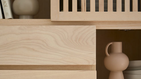 drei Schubladen mit grifflosen Massivholzfronten