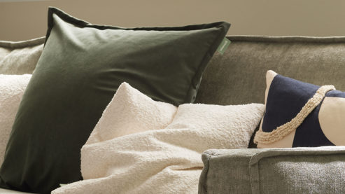 Kissenbezug aus mattem Samt mit umlaufender Steppnaht und verdecktem Reißverschluss
