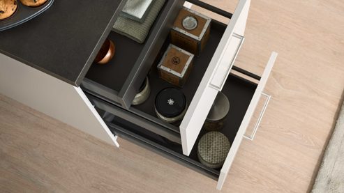 Neben dem modernen Design punktet die C615 mit offenem Stauraum, der Platz für Dekoration, Geschirr oder Kochutensilien bietet, und einer hochwertigen Edelstahl-Einbauspüle, die Funktionalität und Stil verbindet. Zusammen entsteht ein Küchenkonzept, das klar, modern und wohnlich zugleich ist – perfekt für alle, die zeitgemäße Eleganz und Alltagstauglichkeit kombinieren möchten.