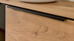 Mit seiner Akzent-Holztür aus massiver Asteiche und drei Einlegeböden schafft der Hängeschrank zusätzlichen Stauraum und bringt eine rustikal-edle Note in dein Wohnzimmer. Maße ca. 42 x 117 x 40 cm (B/LxHxT).