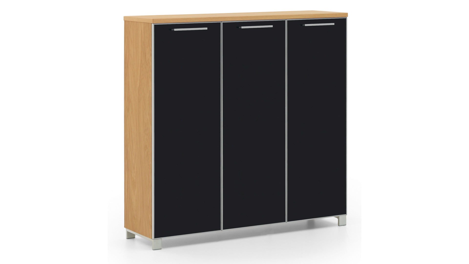 Eiche Bianco & anthrazitfarbenes Glas – drei Türen