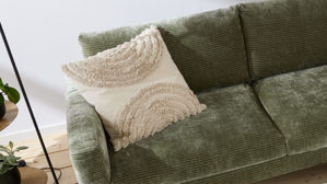 • Die Abbildung zeigt ein Wohnbeispiel, welches auch Dekoration sowie separat erhältliches Zubehör enthält. Im Lieferumfang enthalten ist eine Kissenhülle.